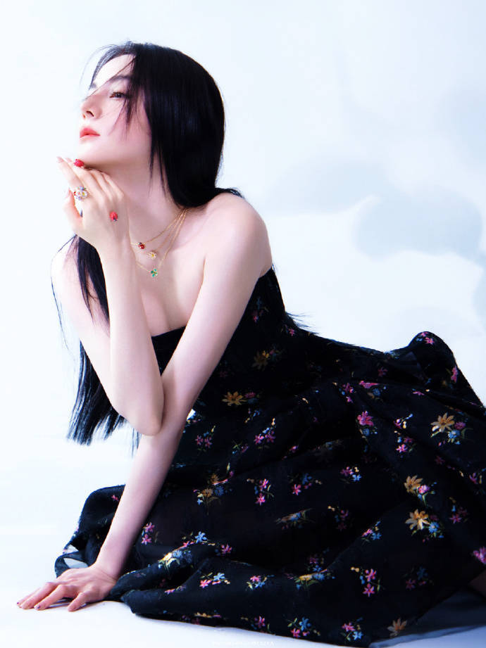 黑色碎花裙搭配黑长直发型,迪丽热巴的这款造型完美融合了“高级感”与“女性力量”。她以黑长直发为底色,搭配一袭黑色碎花抹胸长裙,在极简中释放出极具张力的视觉冲击,真正诠释了‘用细节定义风格,用姿态表达自我’。